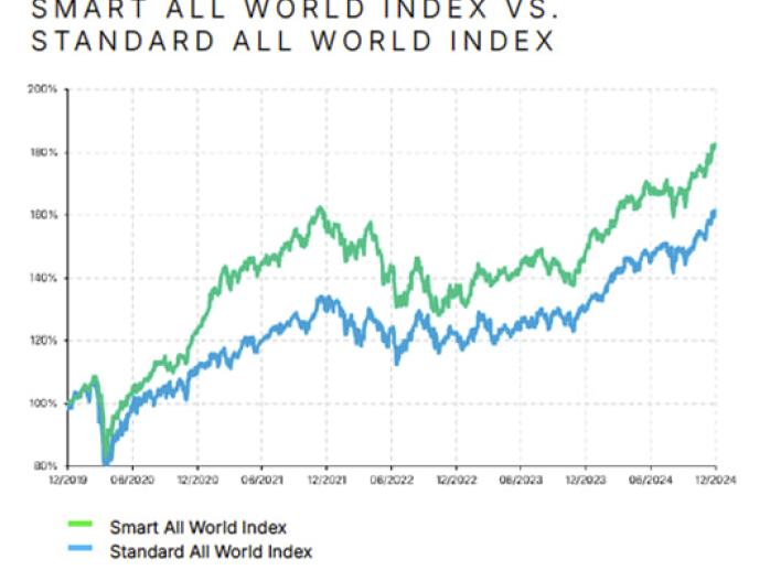 Wie hat sich der Smart All World Index historisch im Vergleich zu einem Standard-All-World-Index entwickelt?